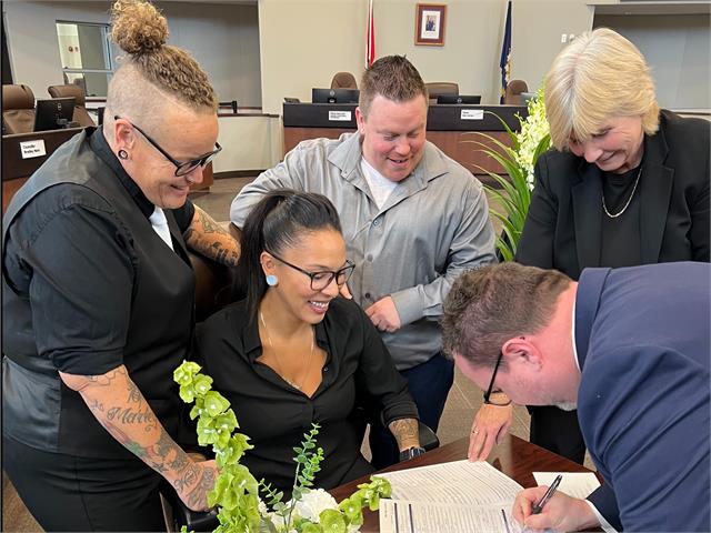 The Officiant will coordinate a mandatory brief meeting approximately two weeks before the ceremony. This meeting may take place by phone or at at Oshawa City Hall. You are required to attend and prepared to bring the following: