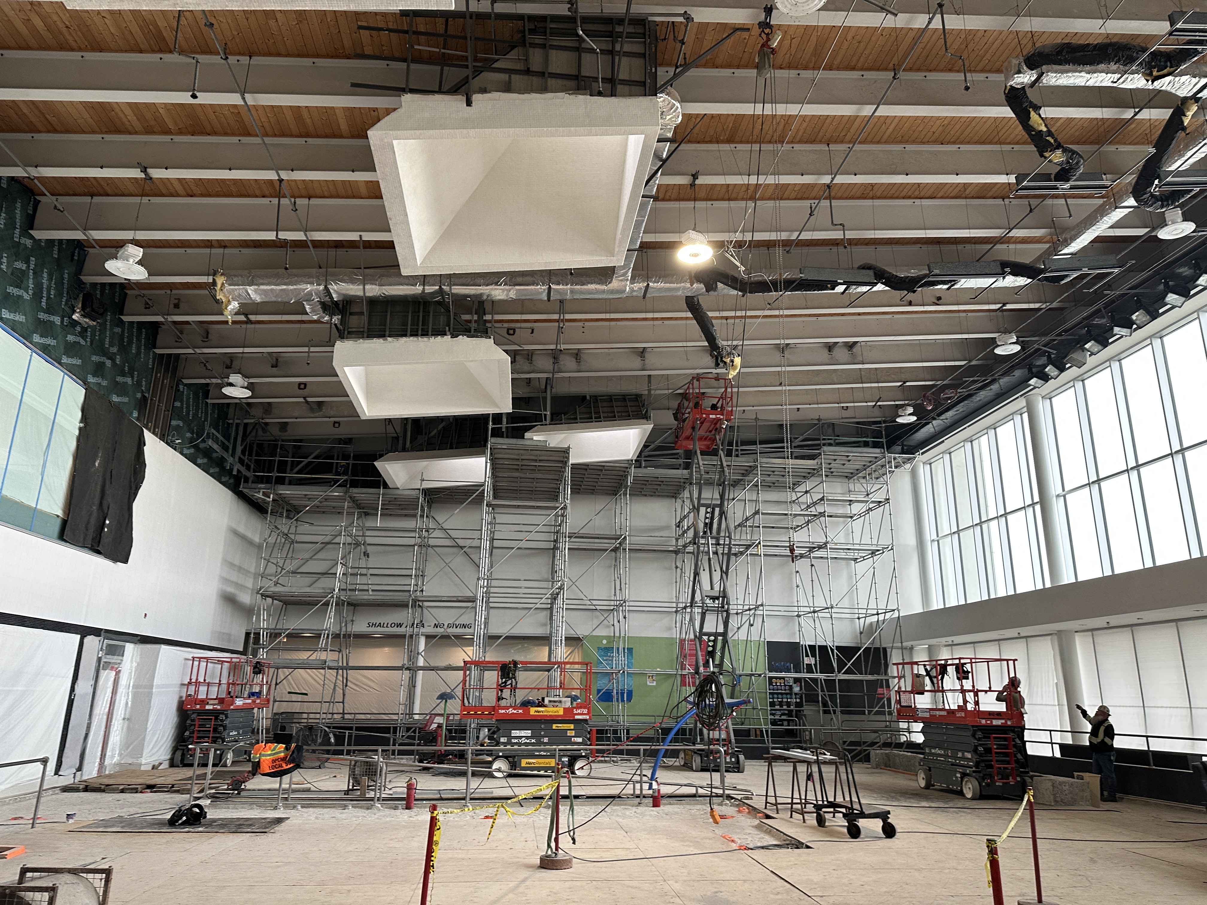 • Interior Pool Work: Reconstruction works within the pool area, which includes installation of engineered platforms and scaffolding, modifications to the mechanical work and fire suppression systems.